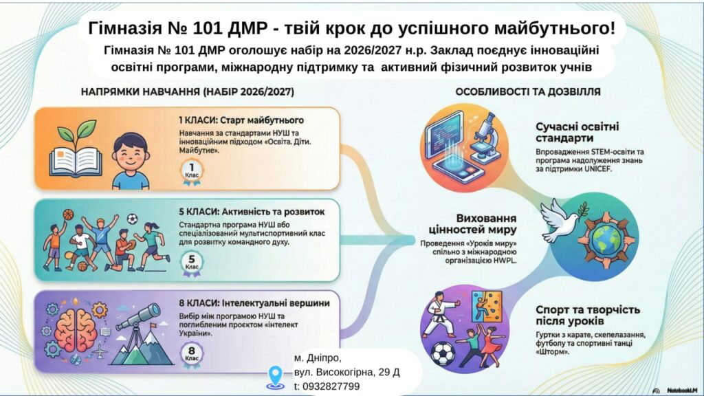 Дніпровська гімназія №101 Дніпровської міської ради. 49048, м. Дніпро,
