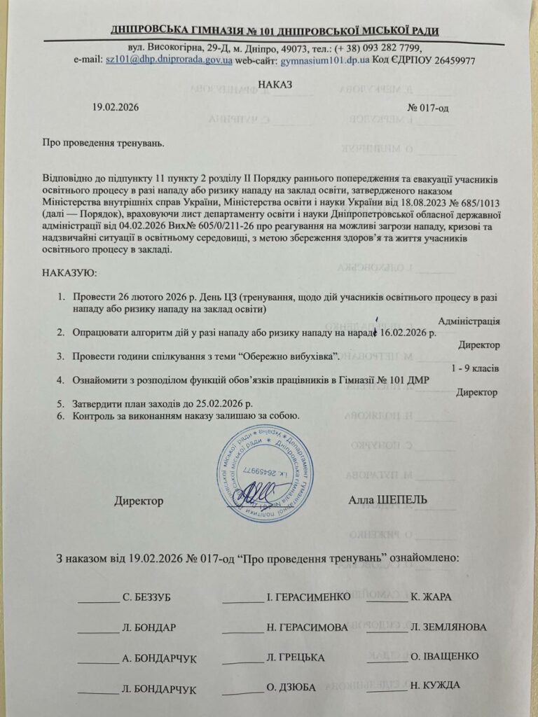 Простір безпеки НАКАЗ № 002 — організацію і здійснення ЦЗ у школіСкачать НАКАЗ № 004 — створ. команди реагування….Скачать НАКАЗ № 003 — підготовку та проведення Дня ЦЗСкачать mriya-proєktСкачать